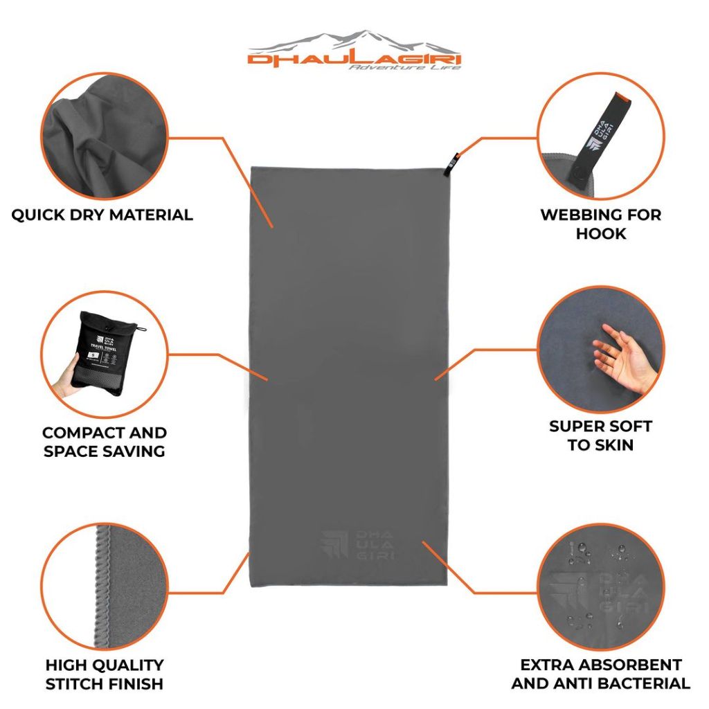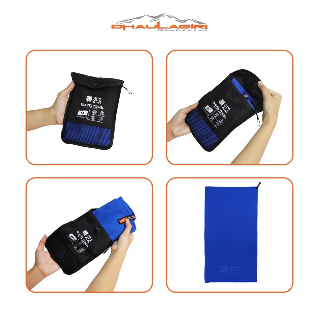 Untuk anda yang senang light packing, handuk untuk traveling (travel towel) keluaran Dhaulagiri ini sangat membantu. Packingnya yang kecil tapi mempunyai daya serap yang tinggi.