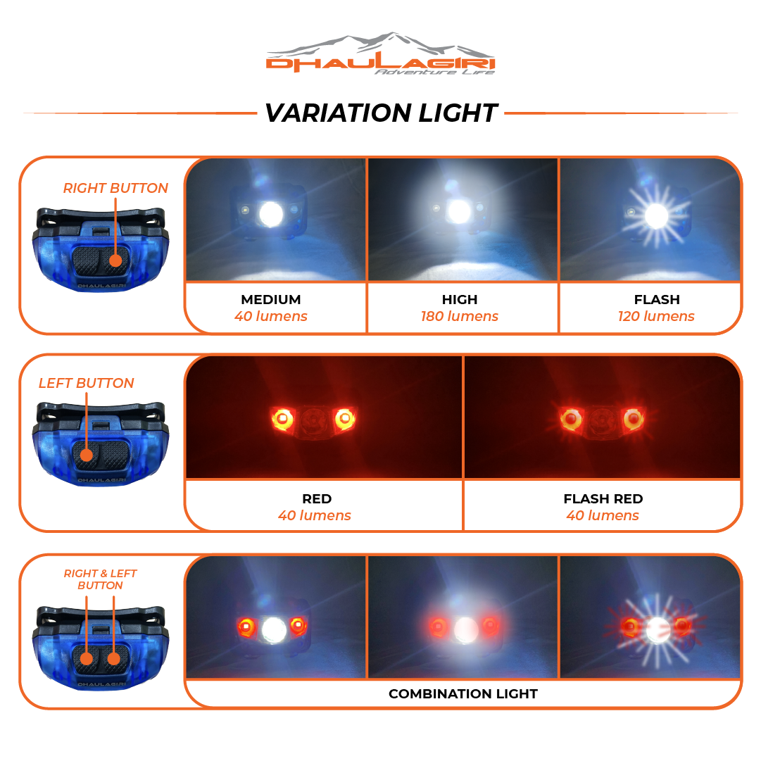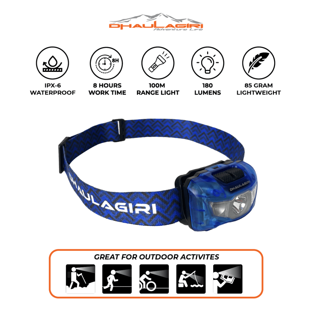 Headlamp dengan bentuknya yang futuristik adalah salah satu produk favorit dikalangan pecinta alam atau kegiatan outdoor. Produk ini dilengkapi dengan LED yang berfungsi untuk pencahayaan jarak jauh dan menyebar dengan berbagai tingkat pencahayaan. Fitur tahan air dan goncangan menjadikan produk ini lebih tepat untuk menemani kegiatan outdoor.