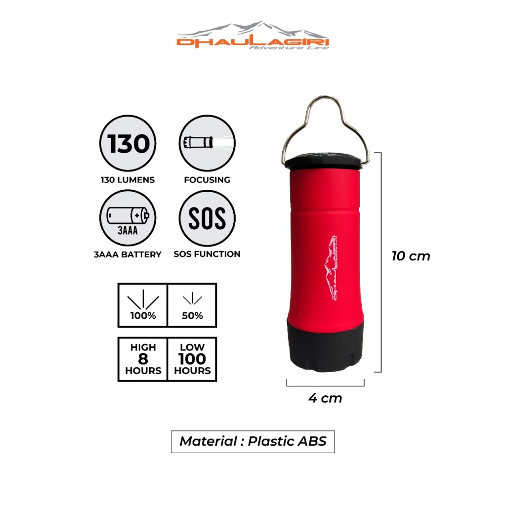 - Features : Brightness 130 lumens , Focusing Light , AAA Battery , Life time up to 8 hours ( Brighter Light ).