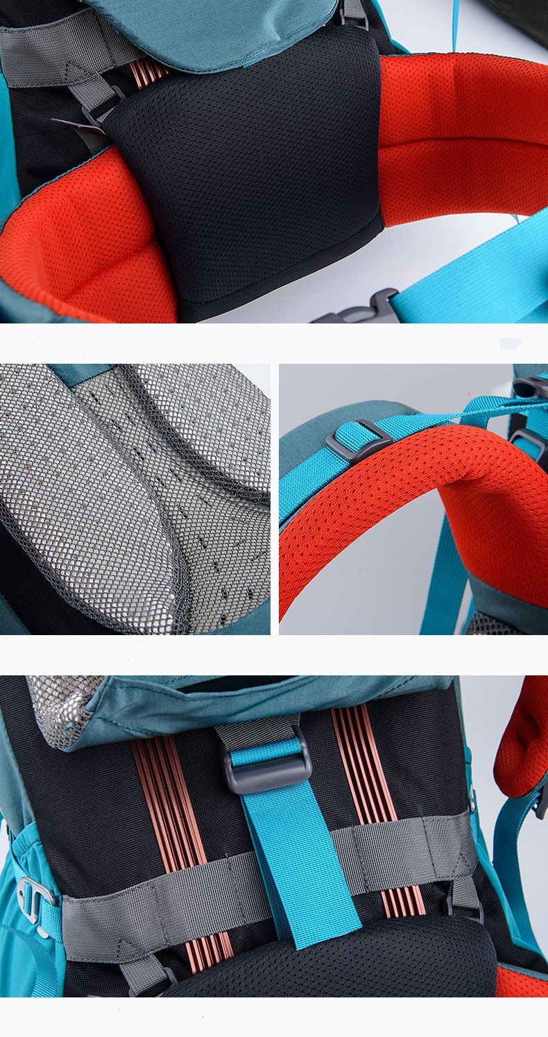 - CR bearing system:Strong CR backpack makes the weight transfer well. The built-in double aviation aluminum strip not only reduces the weight of the backpack itself, but also strengthens the carrying capacity. When the bag is loaded, the actual weight of the backpack is reduced