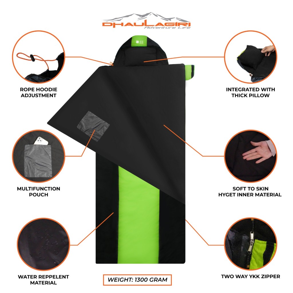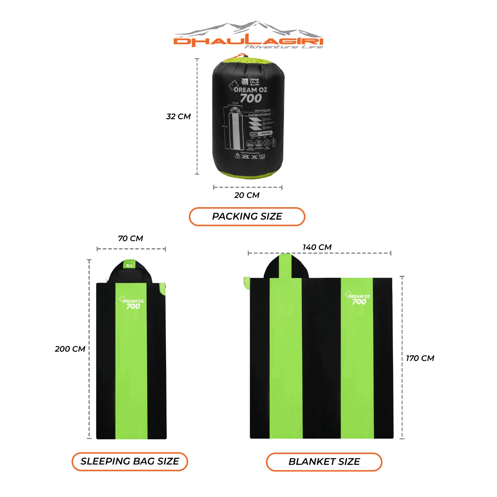 - Dimension: Sleeping Bag Size 70 x 200 cm, Blanket Size 140 x 170 cm, Packing Size 32 x 20 cm