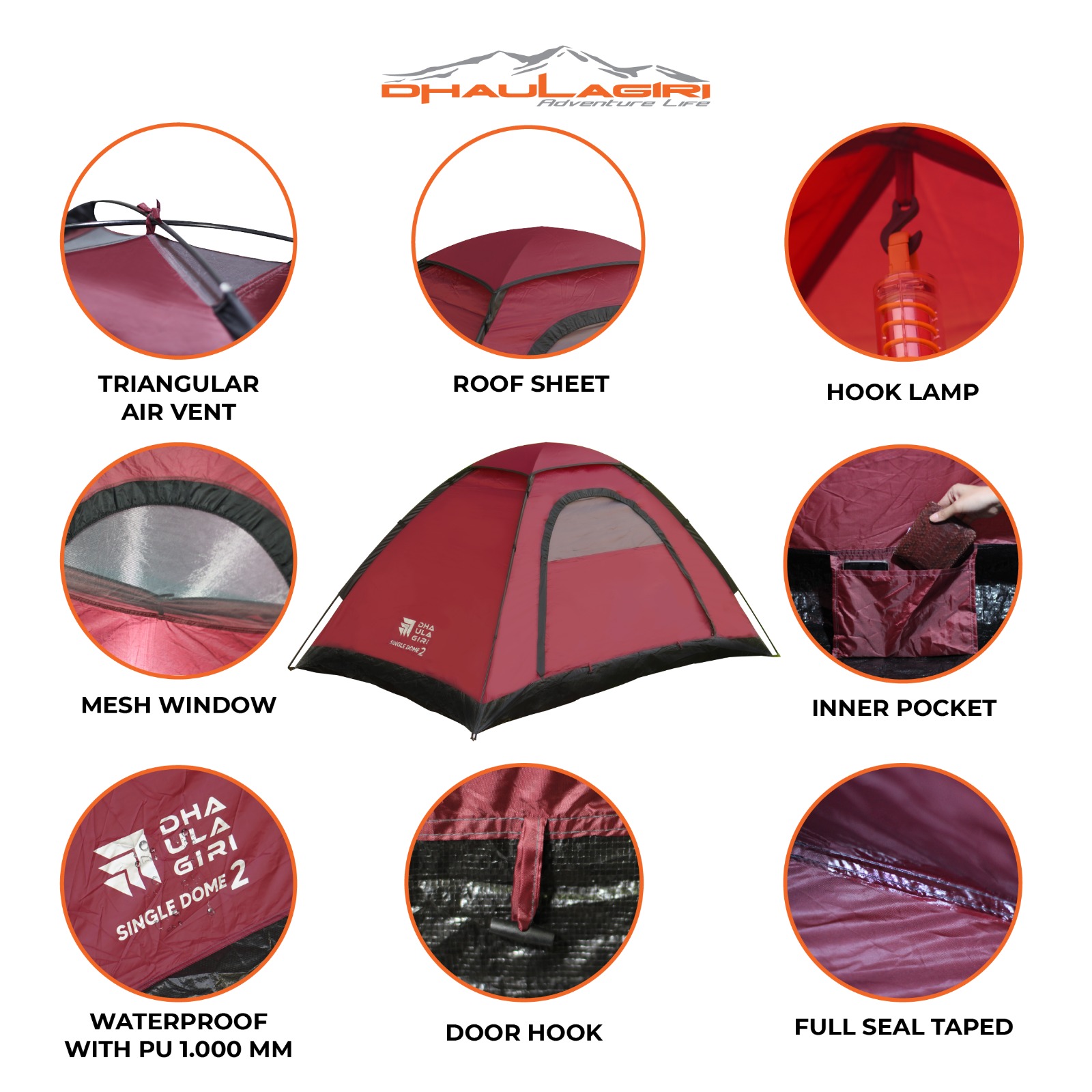 Dhaulagiri Single Dome 2 hadir dengan versi lebih upgrade dari Single Dome sebelumnya yaitu sudah terdapat hook lamp, full seal taped, mesh window dan juga sudah dilengkapi dengan UPF 30+. Selain itu tenda ini juga cukup ringan dengan berat hanya 1,9 Kg memberikan kenyamanan tanpa menambah beban. Tenda dengan kapasitas dua orang ini memiliki desain yang praktis sehingga memudahkan saat pemasangan dan pembongkarannya. Sangat cocok untuk penggiat camping pemula dan jadi pilihan yang tepat untuk Kamu yang cari tenda dengan harga terjangau.