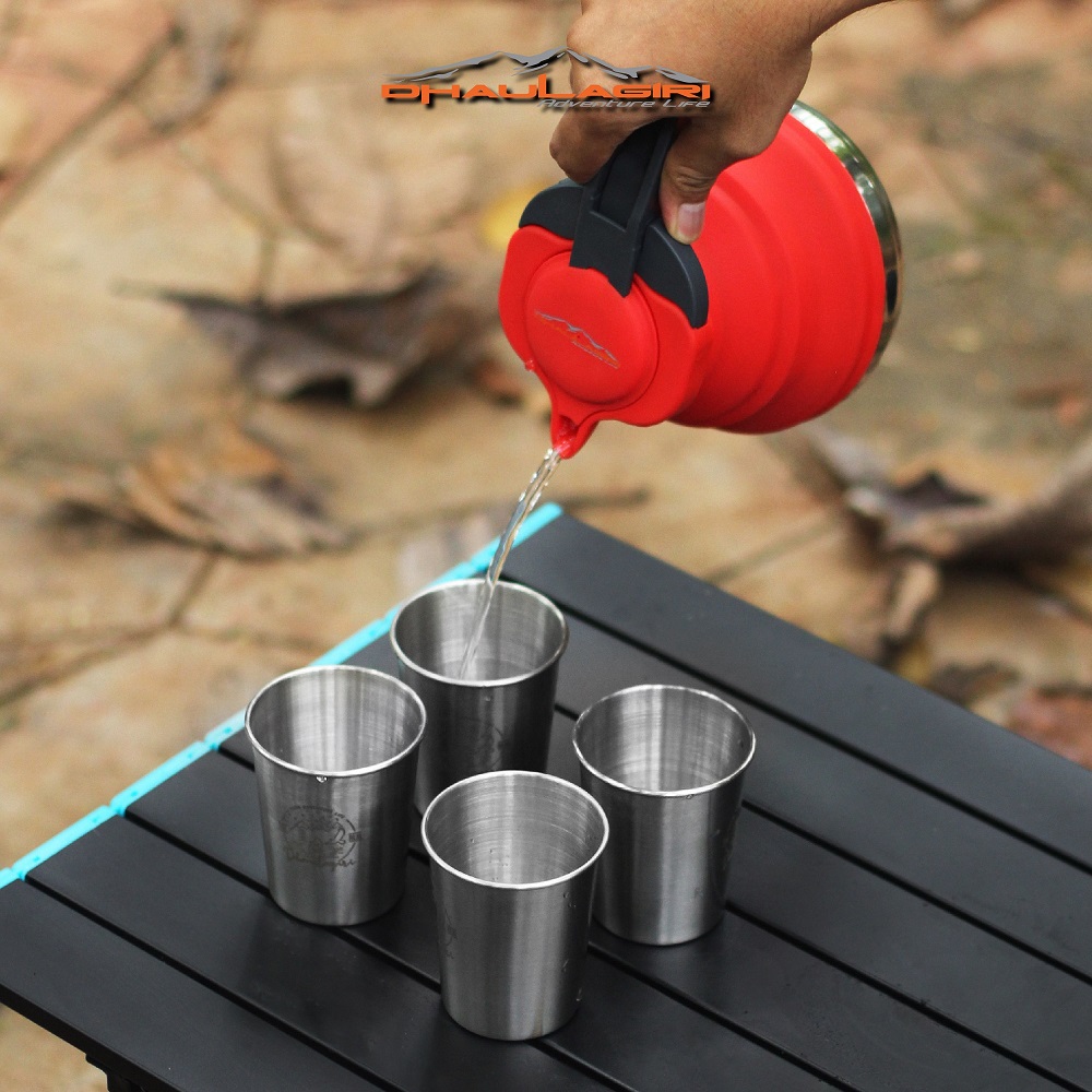 Dalam satu set udah tersedia 4 mug yang siap menemani trip kalian bareng keluarga dan teman-teman. Tersedia dalam dua pilihan kapasitas yaitu 180ml dan 250 ml dan udah dilengkapi dengan pouch yang tebal dan aman dari benturan.