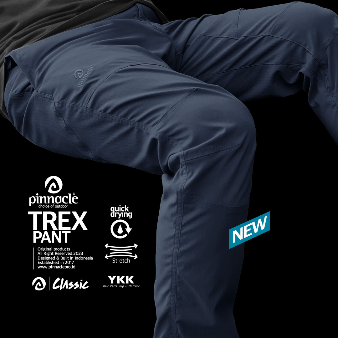 Perkenalkan seri terbaru dari Pinnacle Classic Pants, TREX Pants. Celana ini berbahan Ripstop two way stretch yang dilengkapi dengan 3 saku kombinasi Mesh, di desain dengan mengutamakan kenyamanan dan bobot yang ringan sehingga celana sangat cocok untuk berkegiatan sehari-hari.