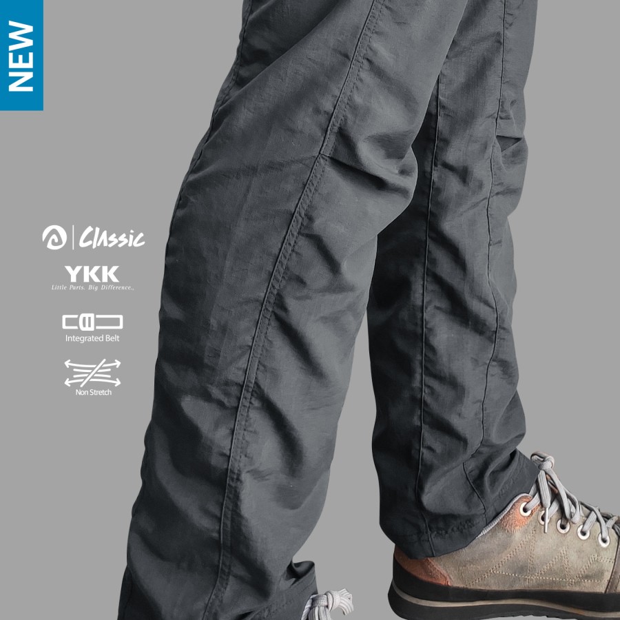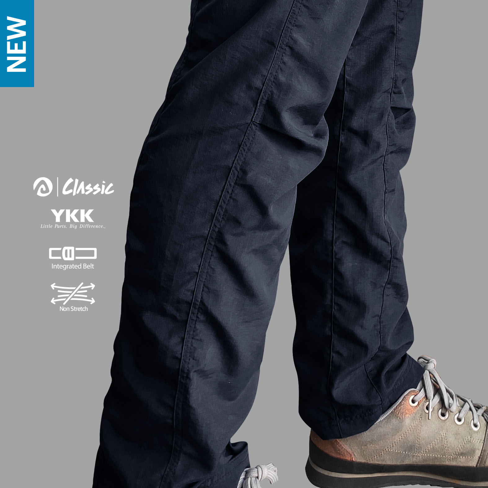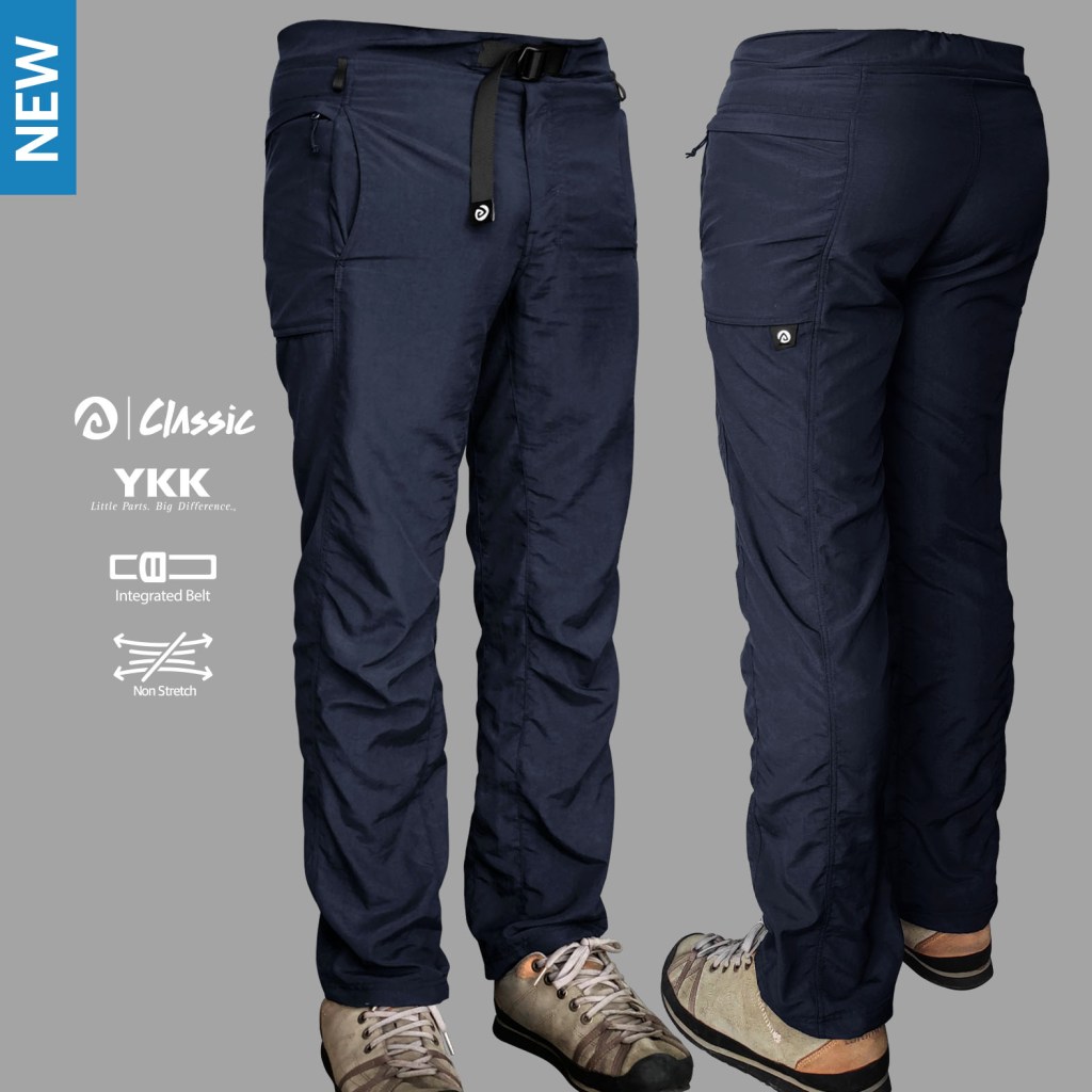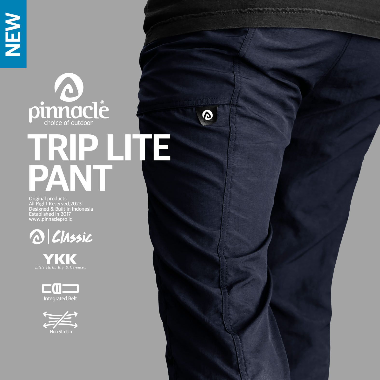 Perkenalkan Seri terbaru Bernama ‘Trip Lite Pant Classic’. Celana ini memiliki fitur berupa pouch khusus yang tersembunyi di bagian kanan pocketnya. Dengan mudah, kamu dapat mengubah pocket menjadi pouch untuk menyimpan celana itu sendiri. Memiliki 2 saku depan dan 2 kantong pada sisi samping kanan & kiri serta di lengkapi sabuk permanent pada bagian pinggangnya. Trip pants menggunakan material ringan cringkle non stretch.