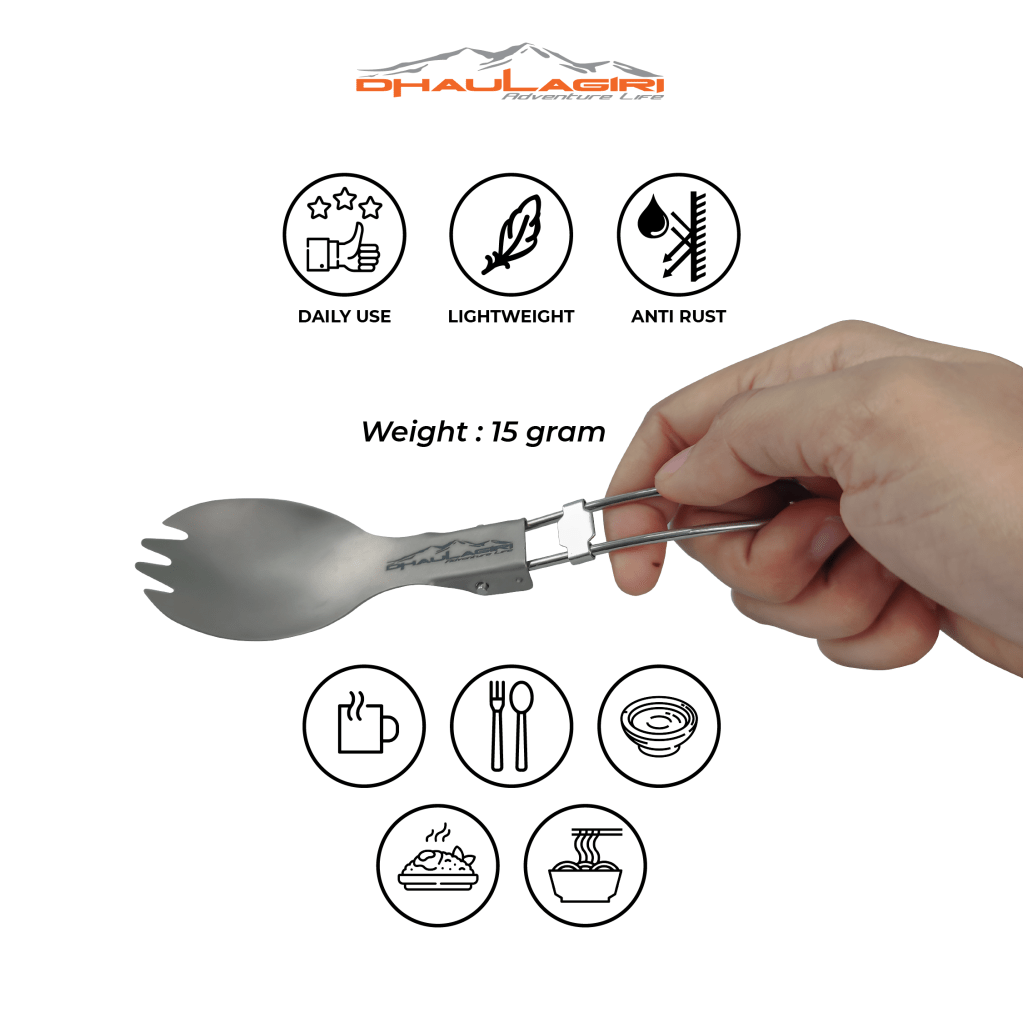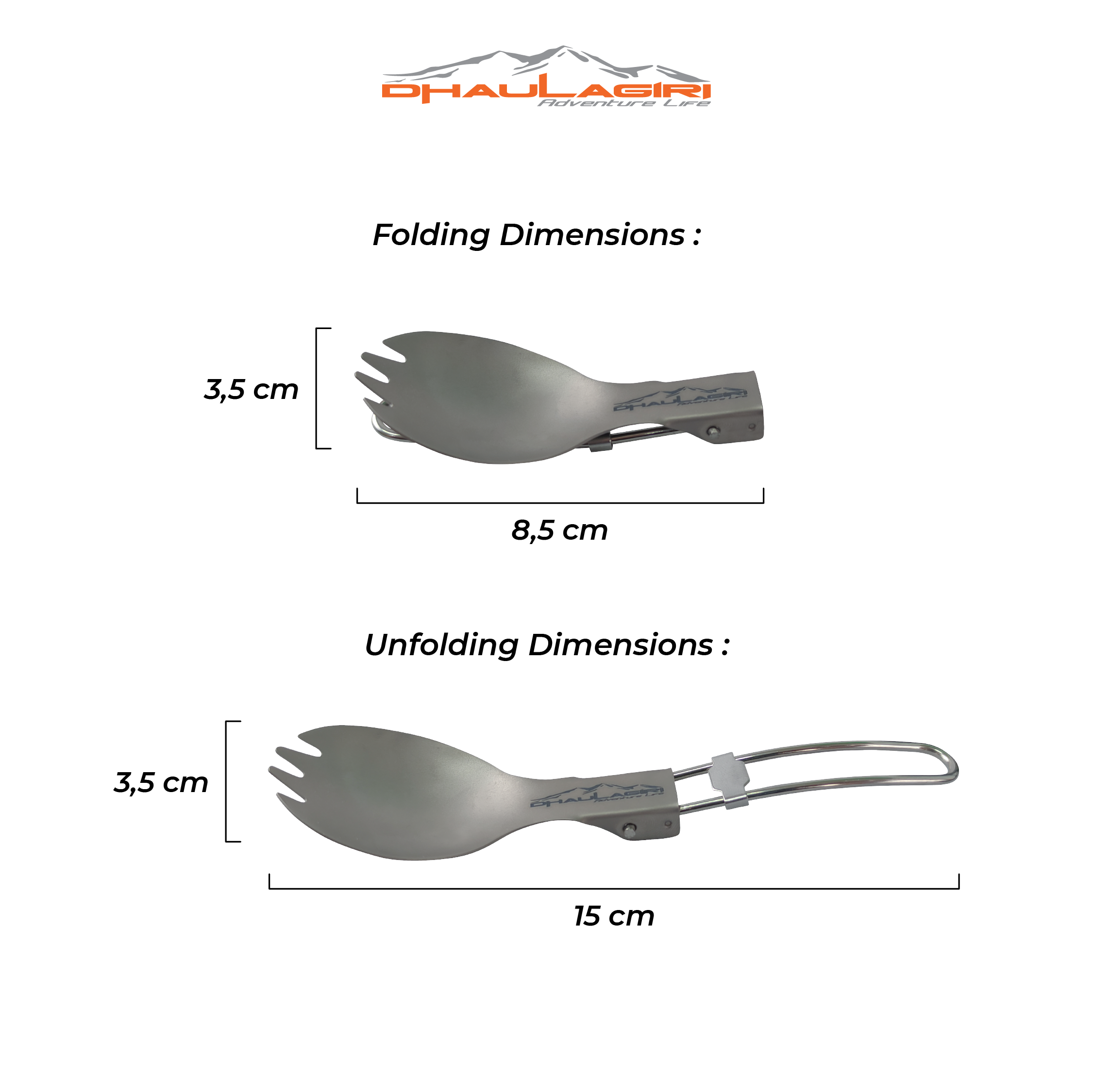 Dhaulagiri Folding Spork Titanium merupakan produk terbaru dari dhaulagiri yang di tujukan untuk menunjang kegiatan memasak dan makan saat camping bersama keluarga. Di lengkapi dengan material titanium yang kuat dan ringan serta fitur folding menjadikan folding spork titanium ini yang terbaik untuk pemilihan cooking ware kalian.