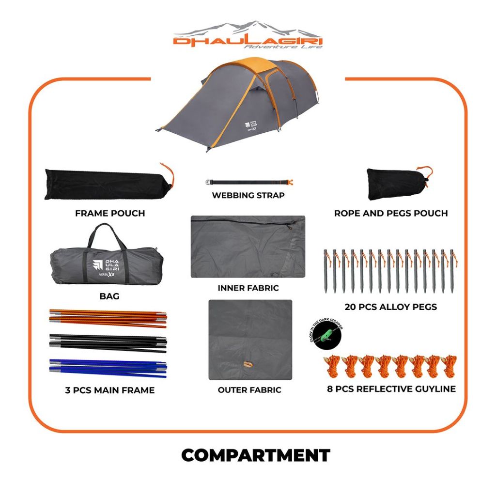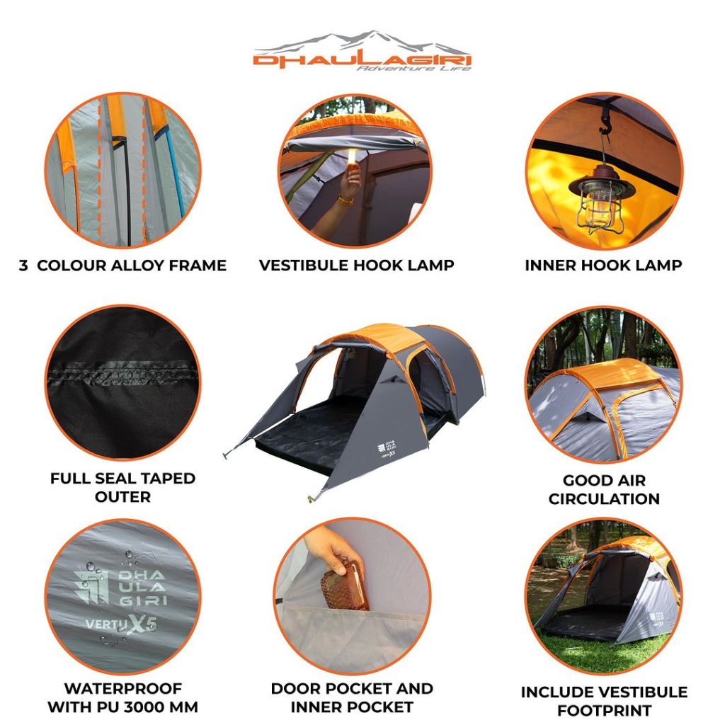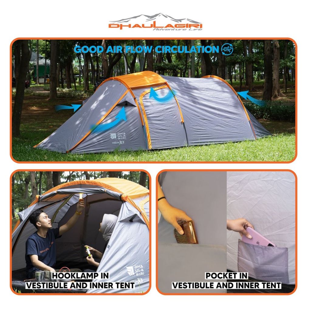 kini vertu hadir dengan fitur yang diperbarui loh sob! perkenalkan vertu x 5. Tenda seri upgrade dari vertu ini memiliki fitur yang sangat menarik sob. Tenda ini sudah include dengan vestibule floor, selain itu vestibule floornya juga sudah model kolam sob sehingga terhindar dari cipratan air atau rembesan air mengalir ketika sobat sedang melakukan aktifitas di halaman tenda. Selain itu vertu x 5 ini memiliki sirkulasi udara yang sangat baik sob dengan 4 jendela membuat kalian sangat nyaman dan sejuk ketika didalam tenda. Selain itu vertu x 5 ini memiliki pintu tambahan dibagian depan yang bisa dijadikan kanopi. Tenda ini sudah double layer dengan kapasitas 4-5 orang dan memiliki 2 variant warna yaitu abu-abu dan biru. Ayo cepetan nih dipilih mana warna yang paling cocok buat nemenin kamu naik naik ke puncak gunung