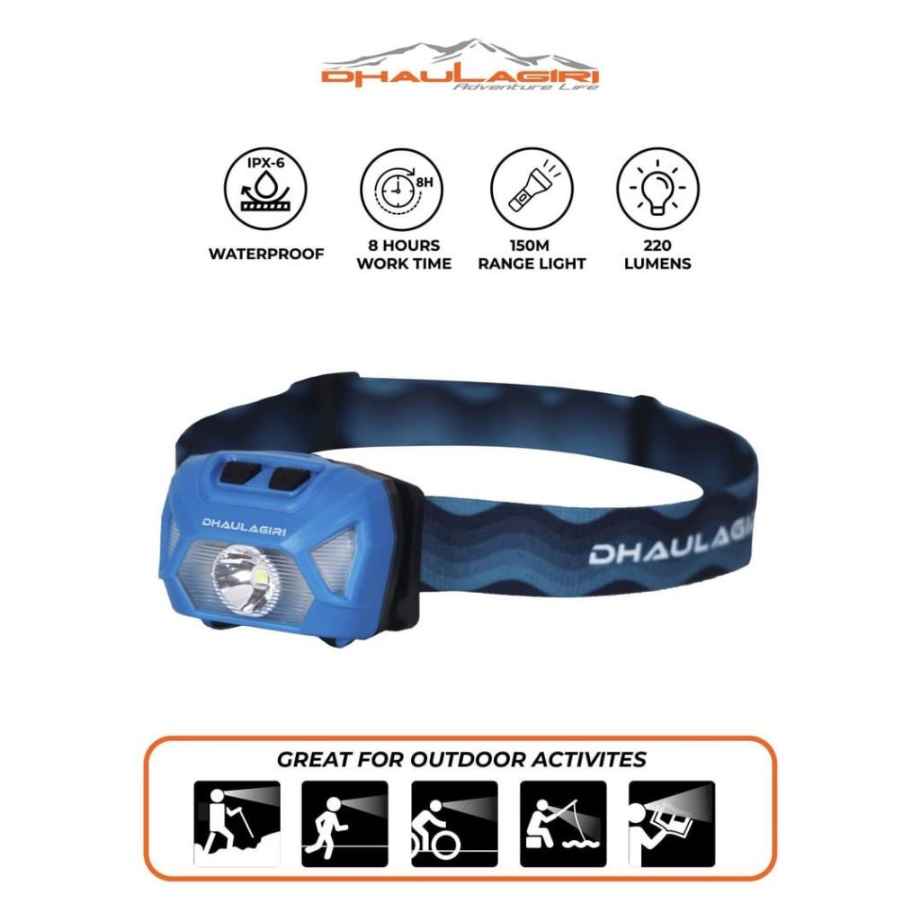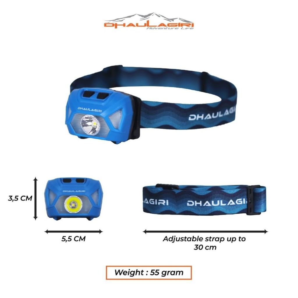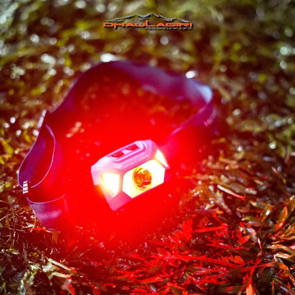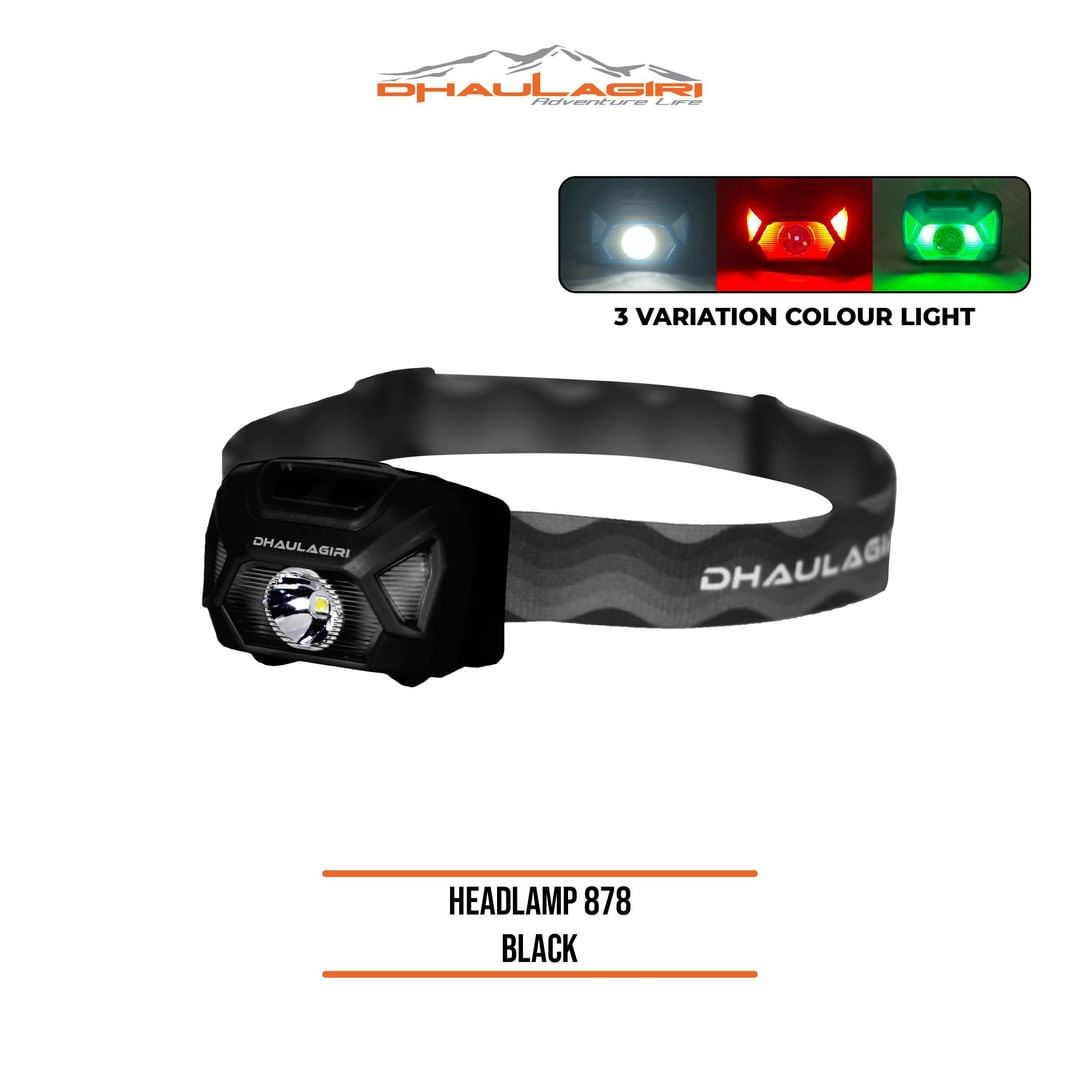 Headlamp 878 adalah headlamp terbaru dari Dhaulagiri. Headlamp ini dilengkapi dengan fitur flash dan ada pilihan cahaya warna merah untuk jarak dekat dan cahaya hijau untuk jarak jauh. Jangan khawatir karena headlamp 878 ini waterproof dan lightweight hanya 50 gram.