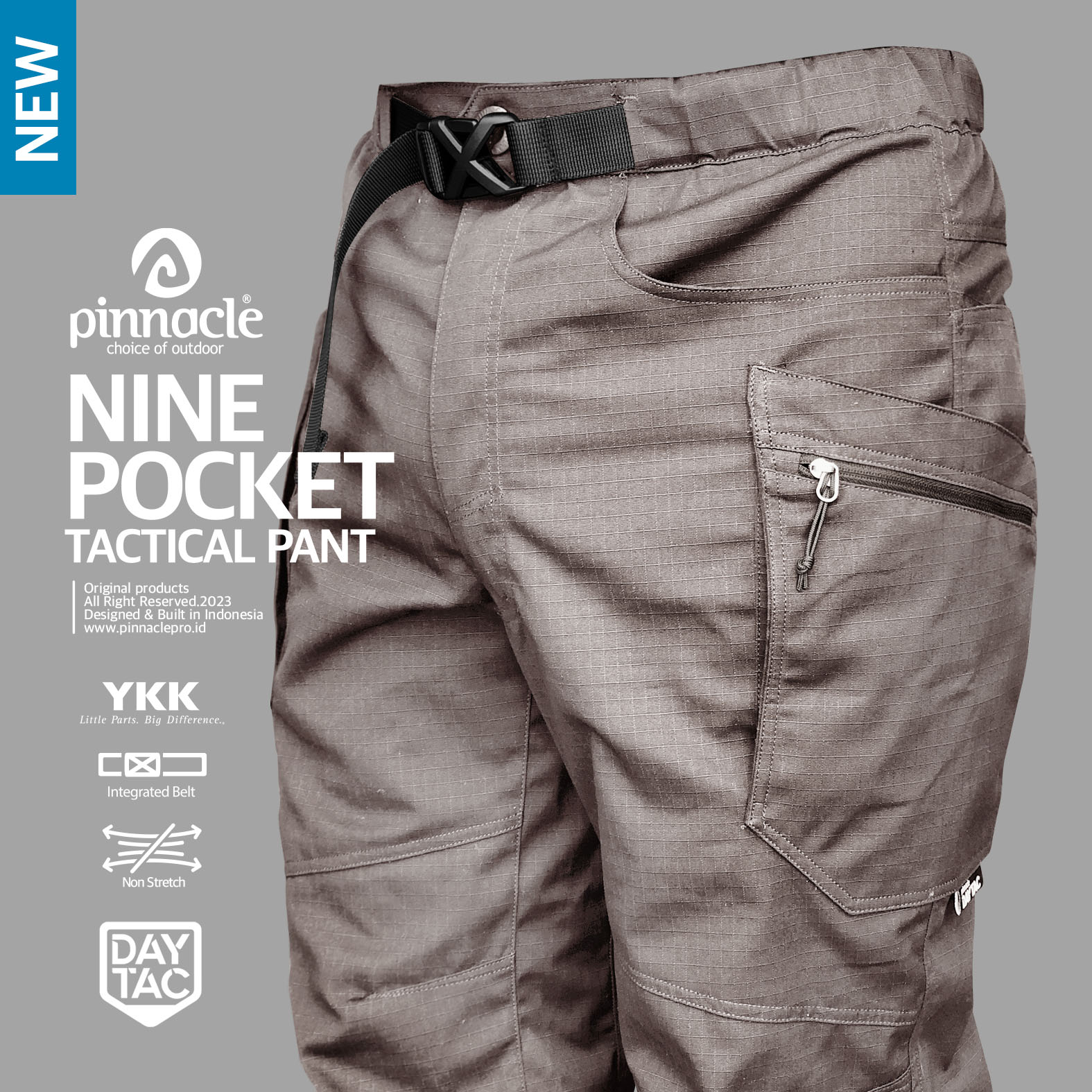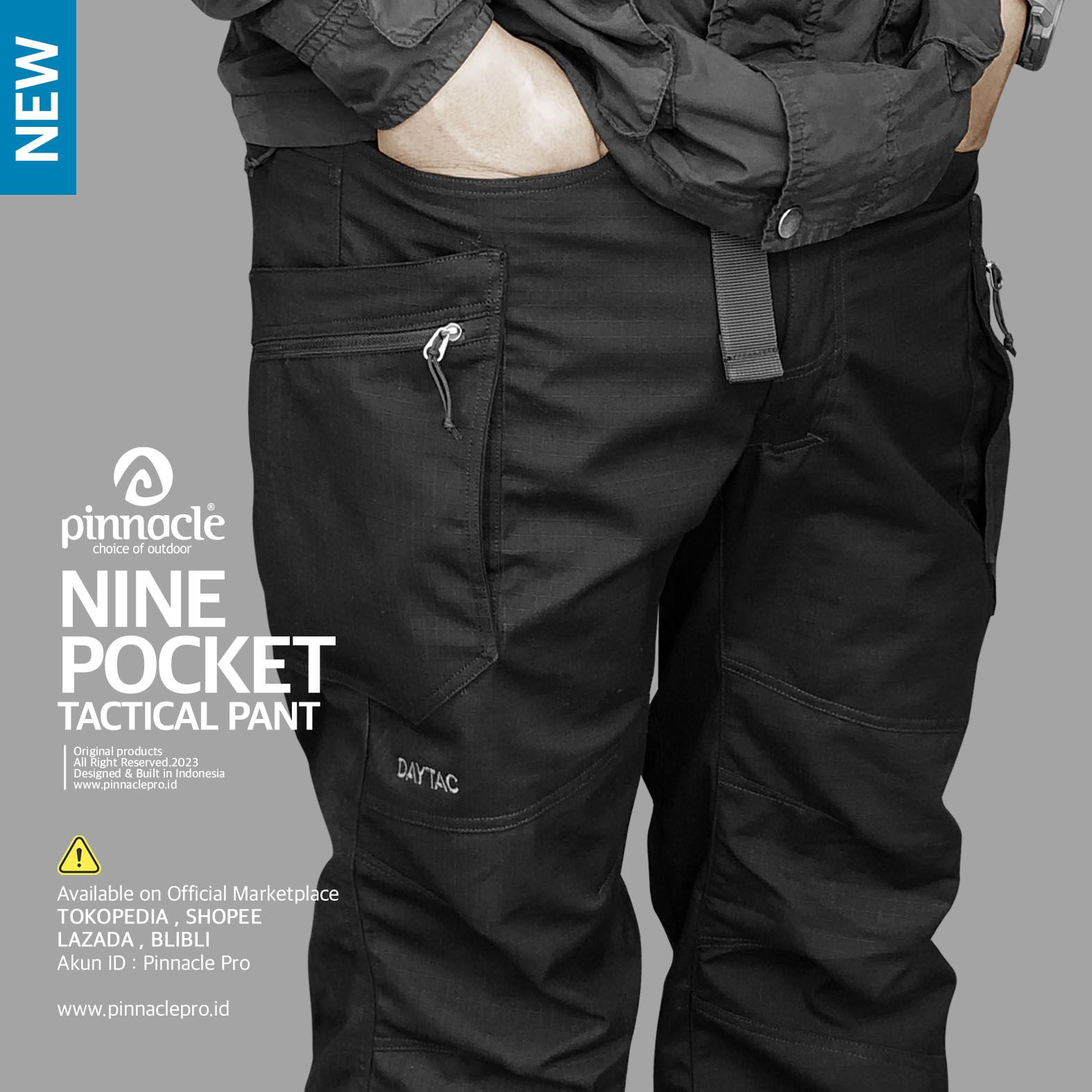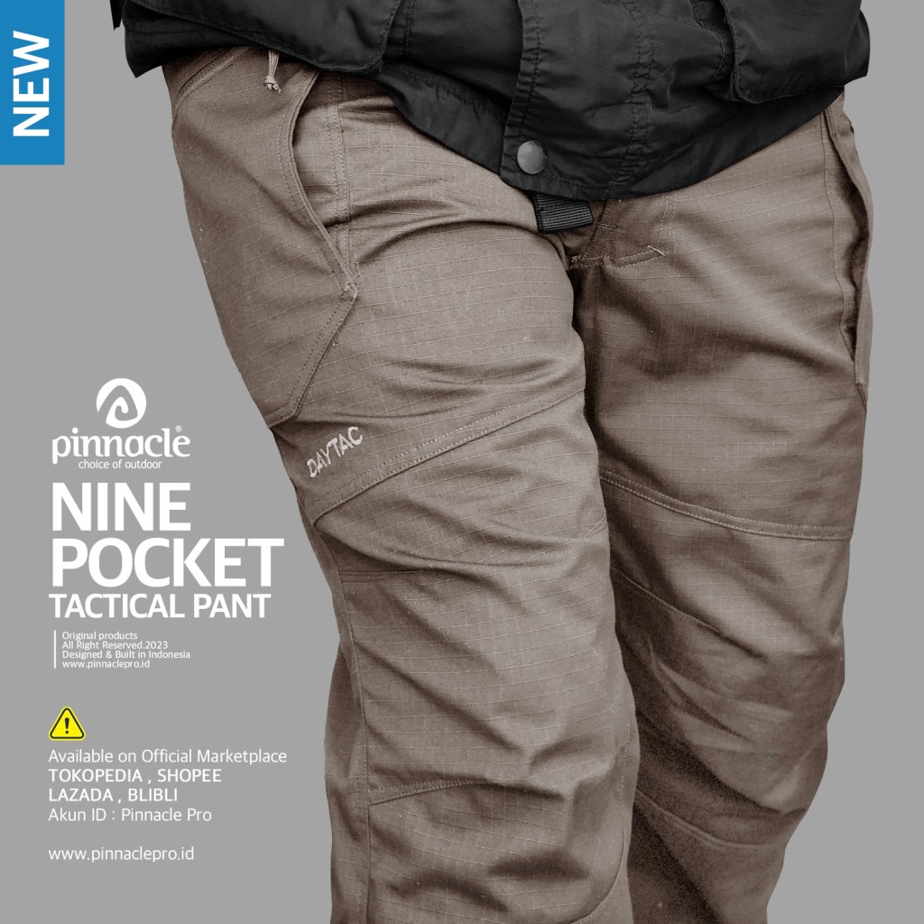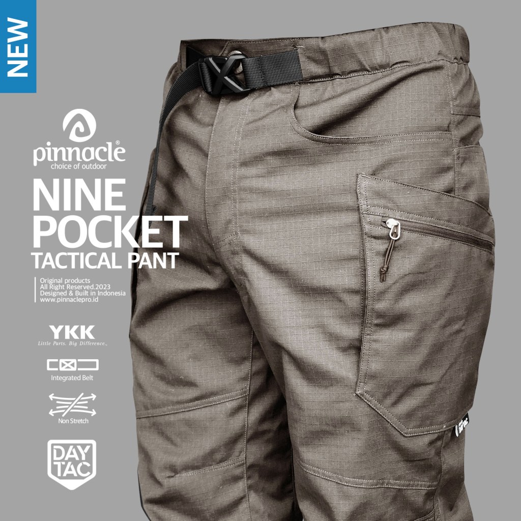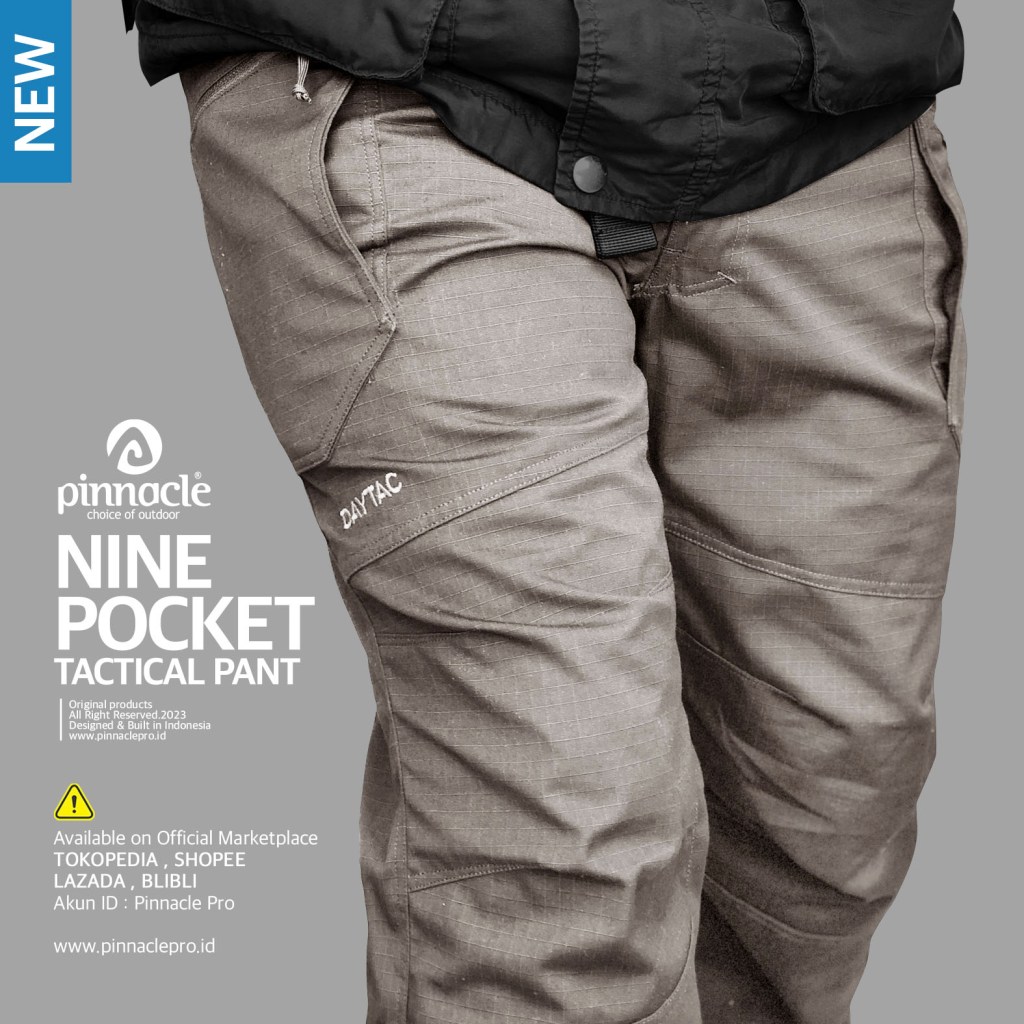Tough adalah kata yang tepat untuk mewakili karakter Nine Pocket Tactical Pant. hadir dengan material pilihan berbahan Ripstop Non-Strech yang dilengkapi 2 pocket pada sisi Depan, 3 pocket pada sisi kiri dan kanan, 1 Pocket pada bagian belakang.Celana tactical ini juga dilengkapi Intergrated Belt buckle di bagian pinggangnya sehingga mengencangkan celana pun bisa lebih cepat dan praktis.