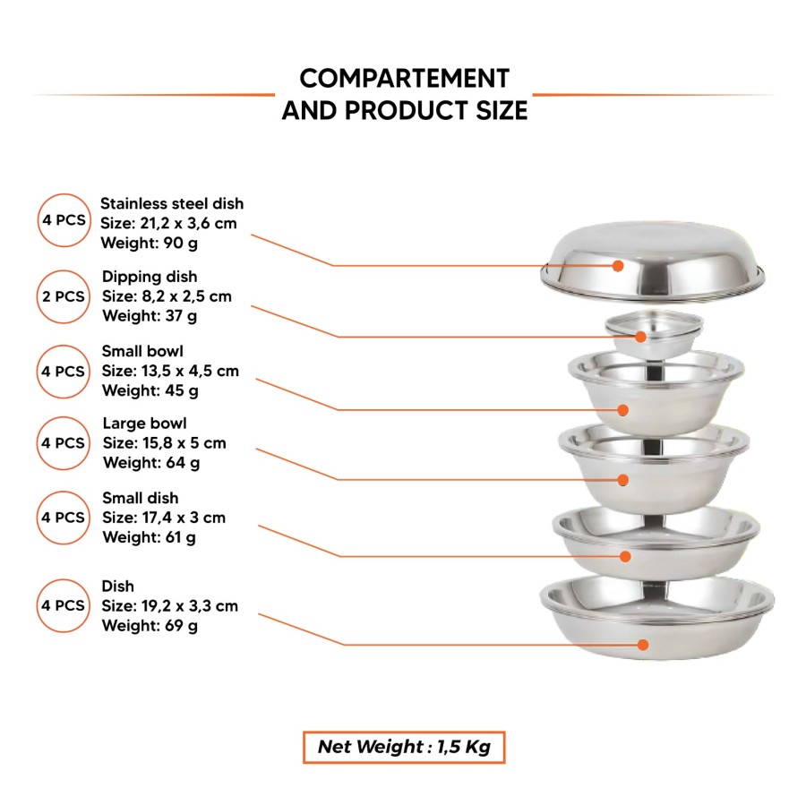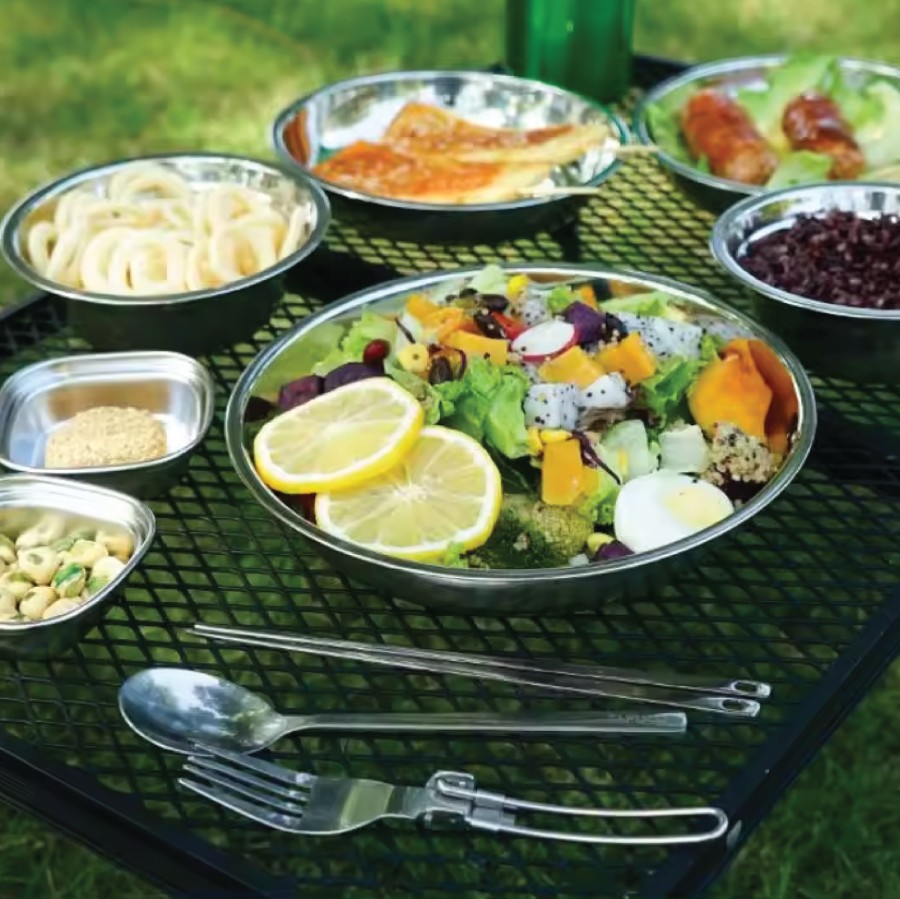Alat Makan yang cocok untuk camping dan hiking maupun digunakan sehari-hari berbahan stainless steel yang sudah tersertifikasi. Tableware ini sangat ringan dan kokoh, mudah dicuci dan sangat aman dipakai.