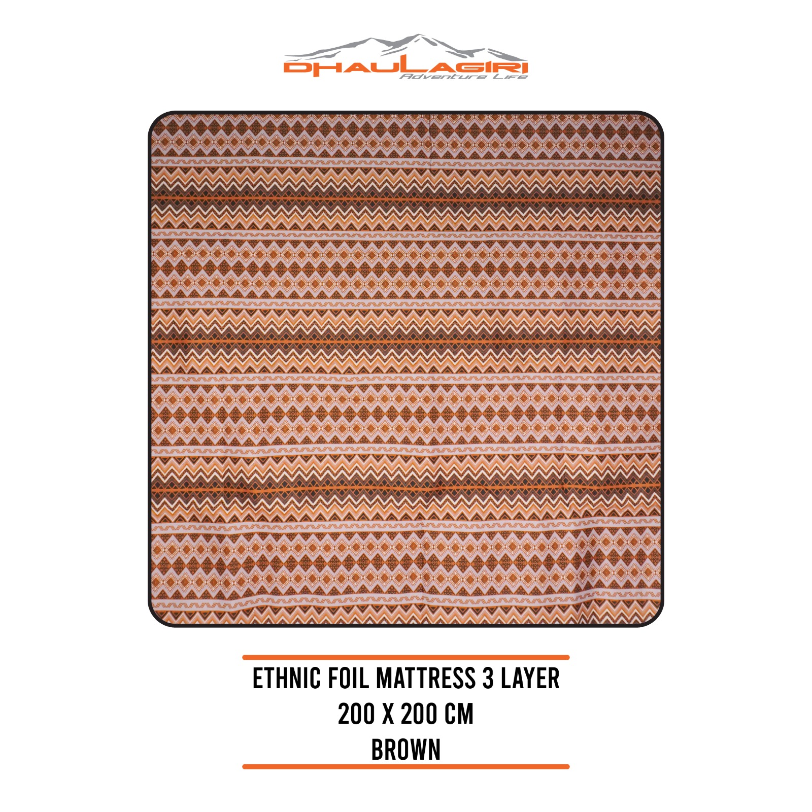 Ethnic Foil Mattress 3 Layer dengan motif ethnic terbarunya yang memiliki ukuran 200 x 200 cm. Matras 3 lapis ini bikin aktivitas kamu di dalam tenda semakin nyaman, dengan lapisan polyester clotch, 2 mm pearl cotton dan waterproof alumunium film membuat matras ini sangat nyaman digunakan untuk alas tidur di tenda maupun alas piknik saat aktivitas outdoor. Selain desain pattern ethnicnya yang unik dan materialnya yang nyaman, matras ini juga sangat compact memiliki berat hanya 780 gr. Jadi praktis dan mudah dibawa kemana-mana.