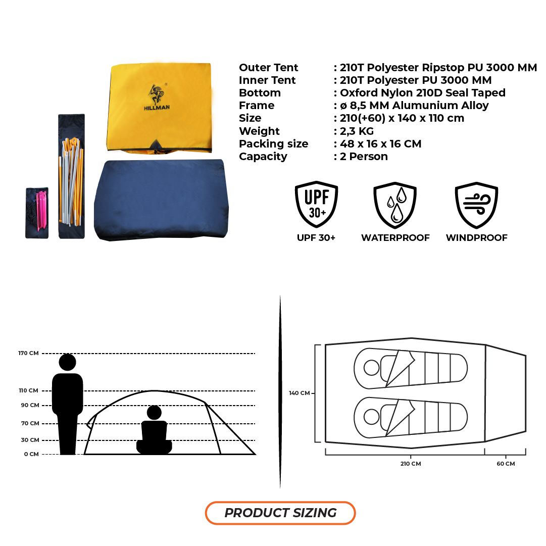 - Outer : 210T Polyester Ripstop , PU 3000mm, full sealed tape