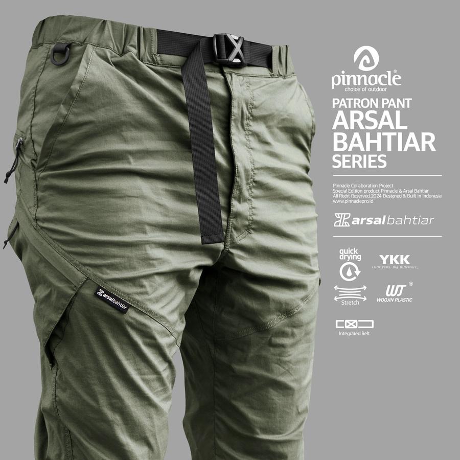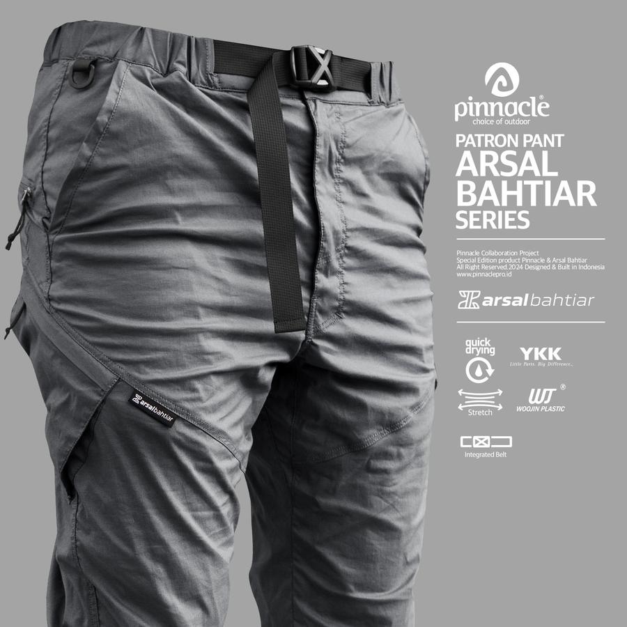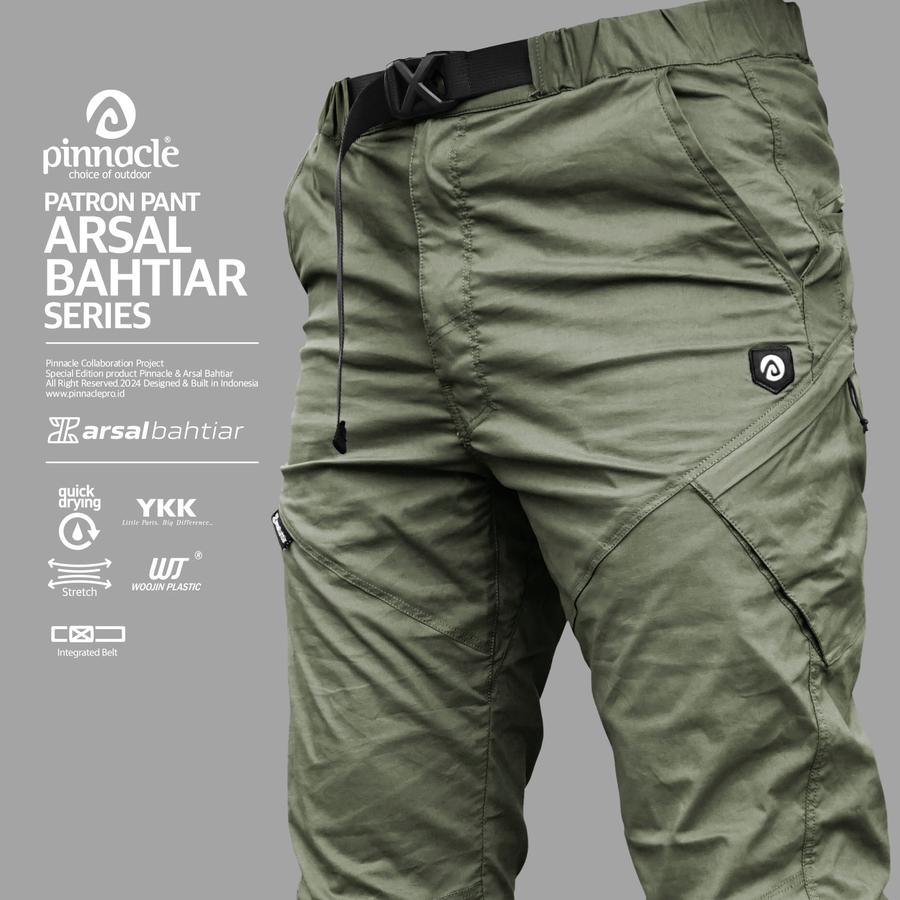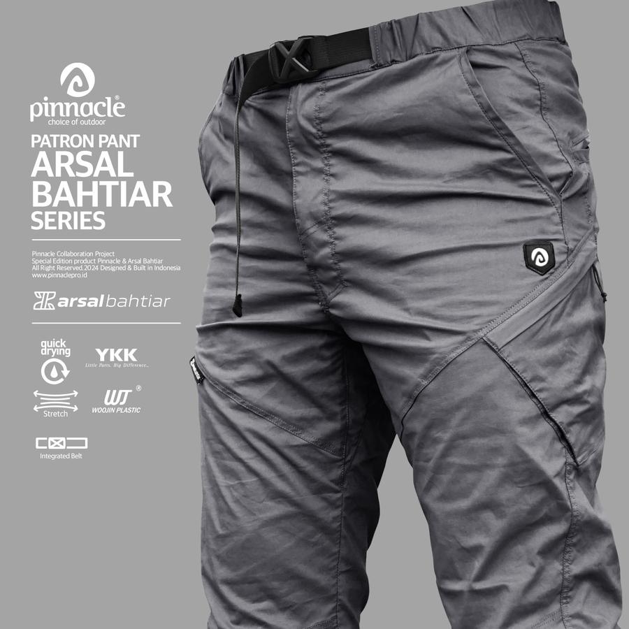 Pinnacle menghadirkan celana panjang Patron yang didesain khusus untuk kamu yang aktif dan tetap ingin tampil stylish. Celana ini hasil kolaborasi dengan arsalbahtiar , Seorang content creator yang memiliki sebuah program dokumenter perjalanan. Karena mobilitasnya tinggi, maka celana ini memiliki 6 kantong penyimpanan : 2 di bagian depan, 2 di sisi kanan dan kiri, serta 2 di bagian belakang. sangat Cocok untuk segala aktivitas dan menyimpan barang dengan praktis.