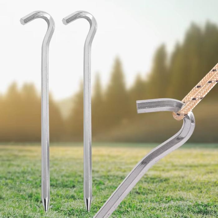 Dengan bentuk hexagon, pasak lebih stabil dan tidak mudah lepas saat digunakan di tanah keras maupun lunak.
