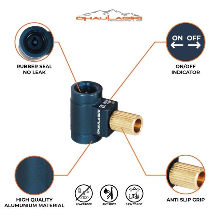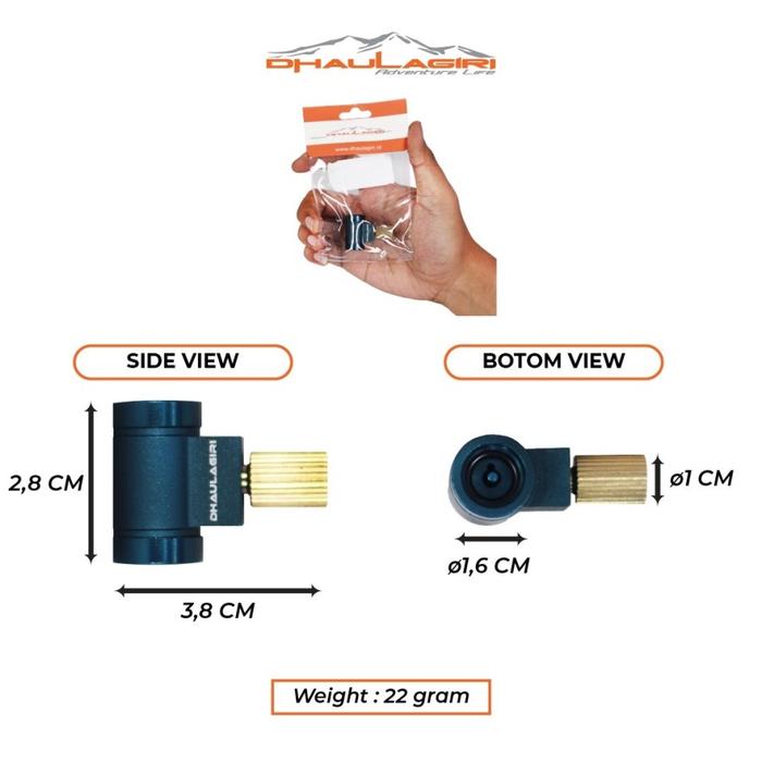 Buat kamu yang hobi camping dan pakai gas canister, wajib punya Dhaulagiri Gas Connector ini. Connector ini berfungsi untuk mengisi ulang gas canister dengan bantuan adaptor tambahan. Desainnya compact, ringan, dan aman digunakan berkat rubber seal anti bocor serta switch on/off untuk kontrol aliran gas. Cocok banget buat kamu yang suka gear Ultralight (UL) karena ukurannya kecil dan nggak makan tempat di tas.