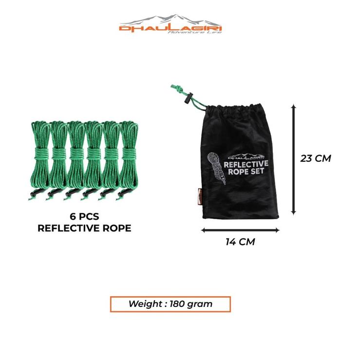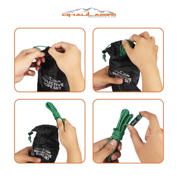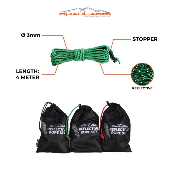 Bikin camping makin aman dan bebas drama tersandung tali di malam hari! Dhaulagiri Reflective Rope Set adalah pilihan utama bagi para pendaki dan camper yang mengutamakan kualitas dan keamanan. Tali ini dilengkapi dengan serat reflektif yang akan menyala saat terkena cahaya lampu senter atau headlamp.