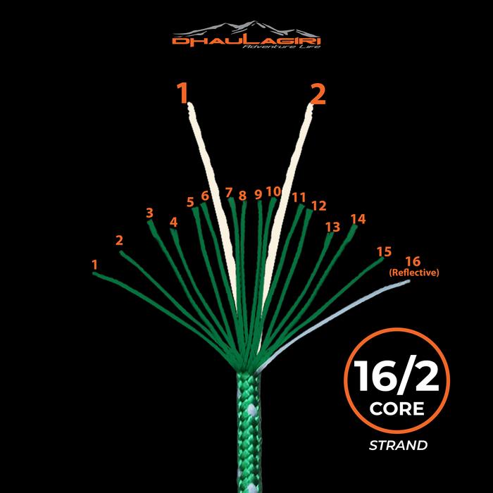 - Konstruksi Kuat (16/2 Core): Terdiri dari 16 strand anyaman luar dan 2 inti tali (core) di dalamnya, memberikan kekuatan ekstra dan daya tahan tinggi terhadap cuaca.