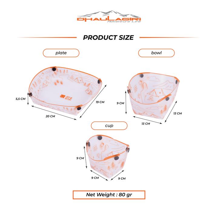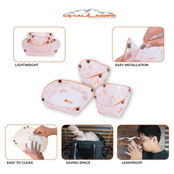 Perlengkapan makan praktis untuk camping, traveling, dan aktivitas outdoor. Dhaulagiri Foldable Travel Meal Kit 3 in 1 hadir dengan desain lipat yang ringan, hemat tempat, dan mudah digunakan. solusi makan di alam bebas tanpa ribet.