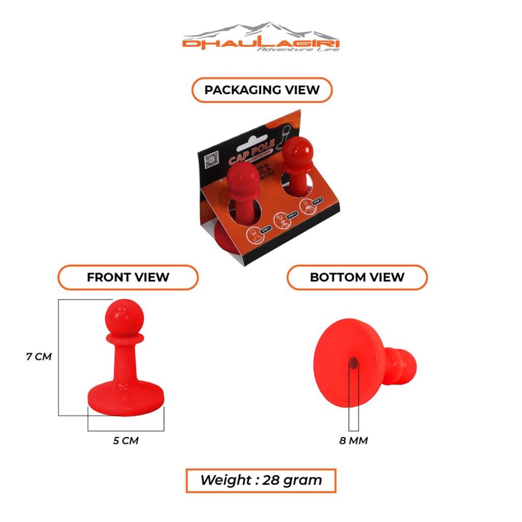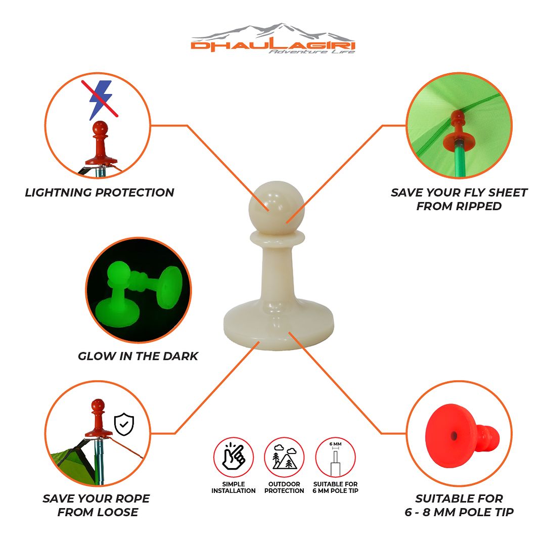 Cap Pole ini memiliki fungsi yang cukup penting yaitu untuk menutup ujung tiang awning, menghindari petir, dan menahan agar tali flysheet kamu tidak terlepas. Nah barang ini cocok banget nih buat kalian yang suka camping dengan mendirikan flysheet menggunakan tiang. Cap Pole ini punya varian warna merah dan orange juga punya varian seri luminous atau glow in the dark.