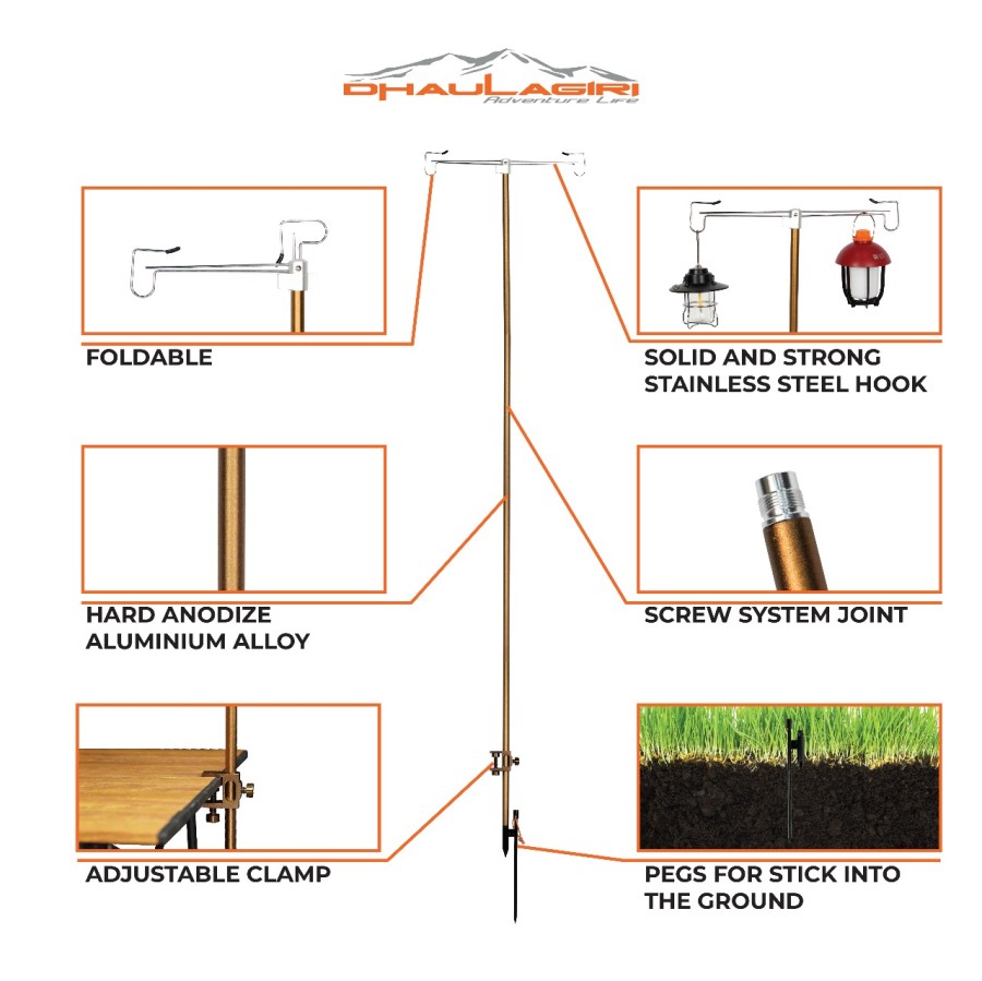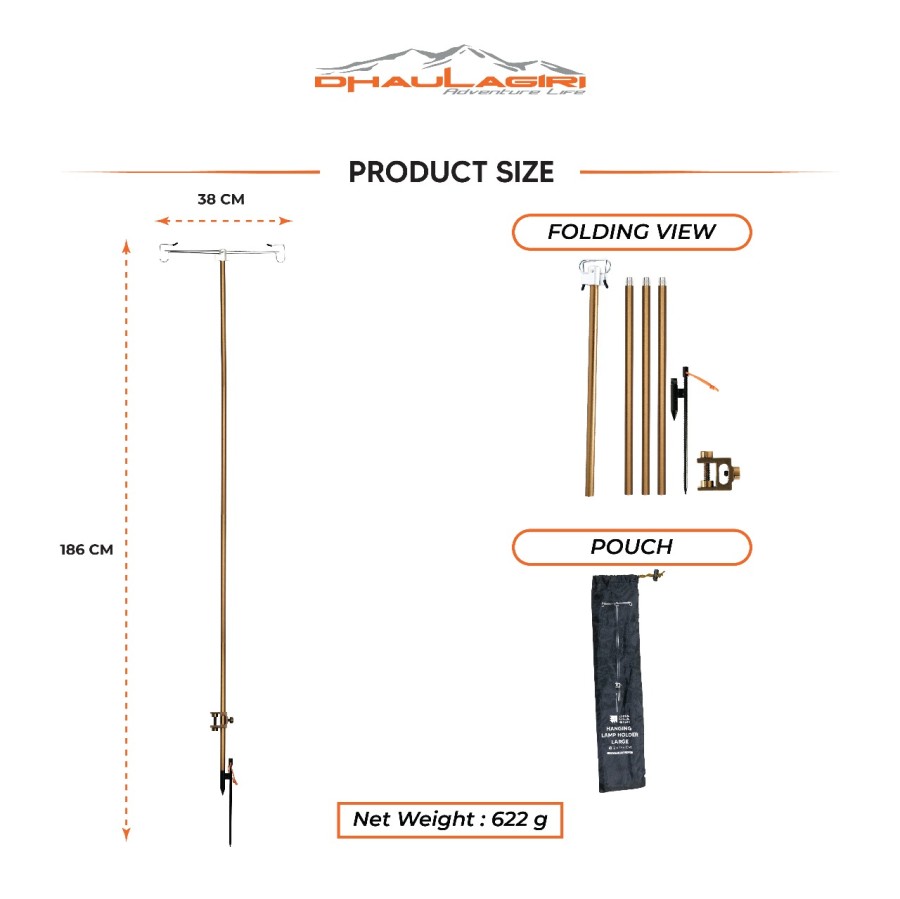 Lamp Holder dengan desain ringan, praktis, dapat dilipat dan portable. Dilengkapi tempat penyimpanan agar mempermudah setelah pemakaian, agar tidak tercecer dan tidak mudah hilang . Mudah dibawa kemanapun kalian camping atau kemanapun kalian bepergian. Dilengkapi dengan tiga kaki untuk dijadikan tripod, pasak ditancapkan ke tanah untuk kestabilan saat kondisi berangin, tahan guncangan, sehingga meningkatkan daya tahan dan kapasitas beban.
