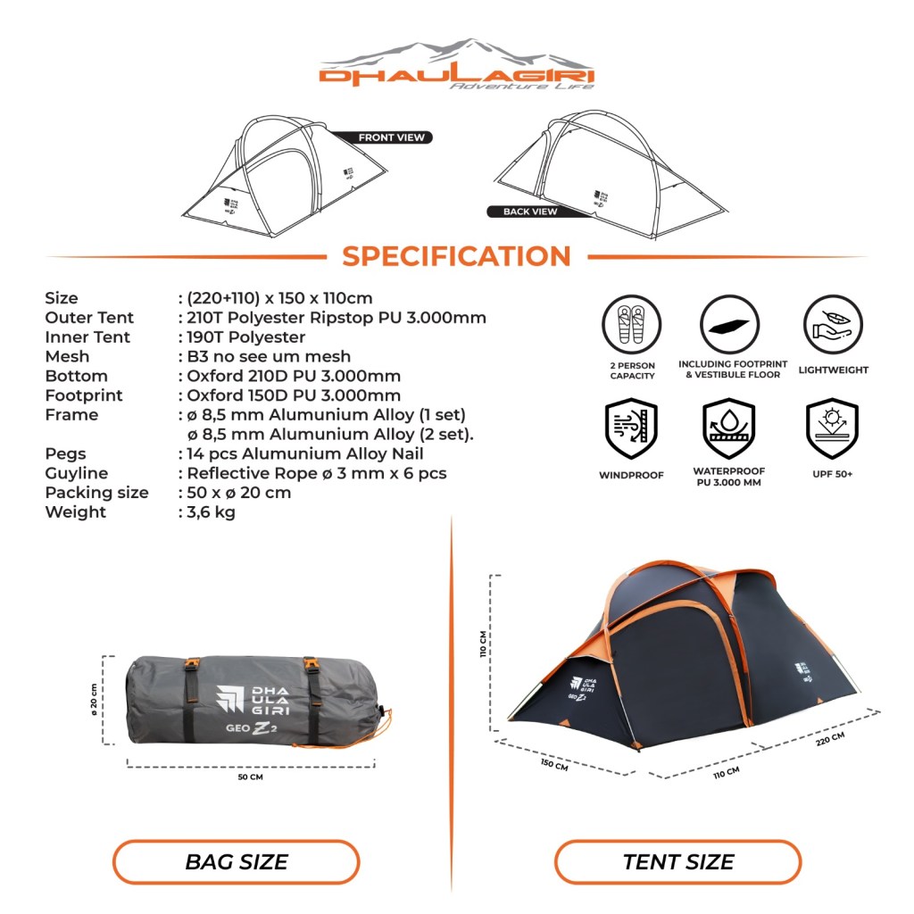 - Ground Sheet : 70D Ripstop Polyester PU 5000mm