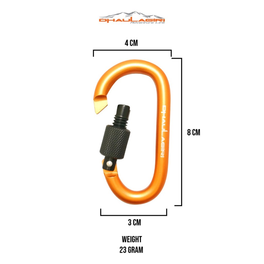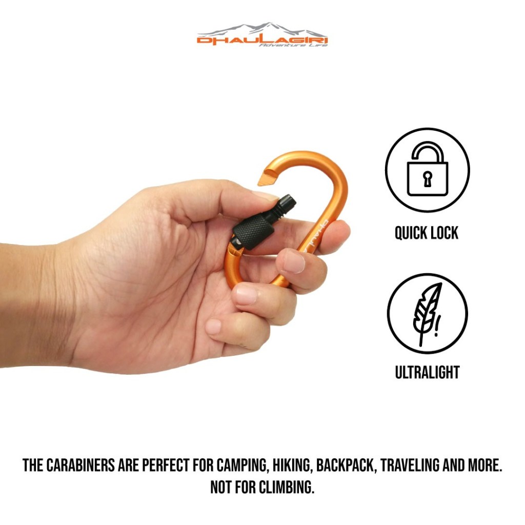 Carrabiner dhaulagiri ini hanya utk aksesoris, tidak dianjurkan utk kegiatan outdoor yg menahan beban berat seperti climbing dll.